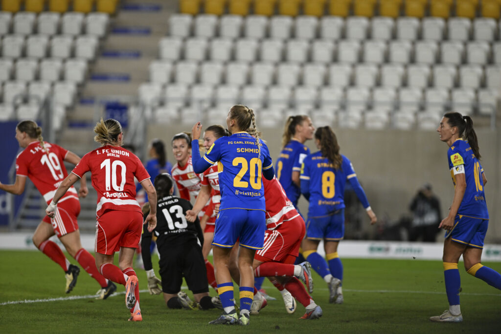 Am Dienstagabend, dem 23. September 2025, trafen im Ernst-Abbe-Sportfeld in Jena die Frauen von Carl Zeiss Jena und Union Berlin aufeinander — das erste Pflichtspiel der beiden Klubs gegeneinander. Vor 1.384 Zuschauer:innen erwartete viele ein kämpferisches, intensives Duell.